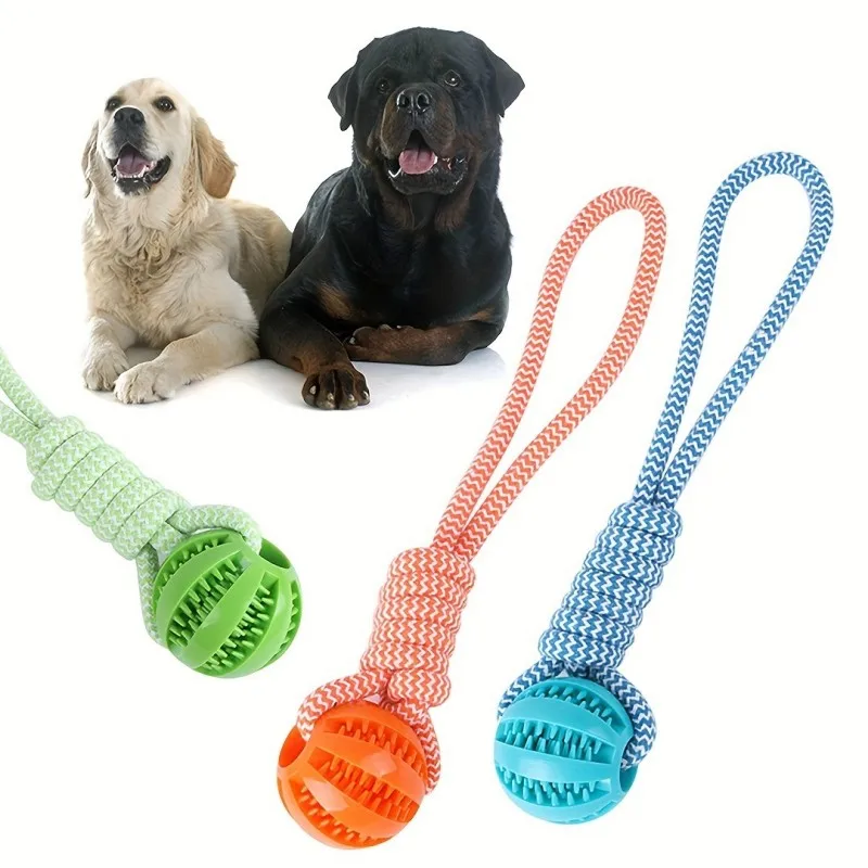 This interactive dog toy combines a tug rope, treat dispenser, and durable chew ball to keep large-breed dogs mentally and physically engaged. Designed for tough chewers, it helps promote healthy teeth and gums while providing hours of entertainment. Fill the textured ball with treats to encourage slower eating and stimulate problem-solving, or use the sturdy rope for fun tug-of-war sessions. Perfect for active dogs, this multifunctional toy supports dental health, reduces boredom, and delivers long-lasting play.